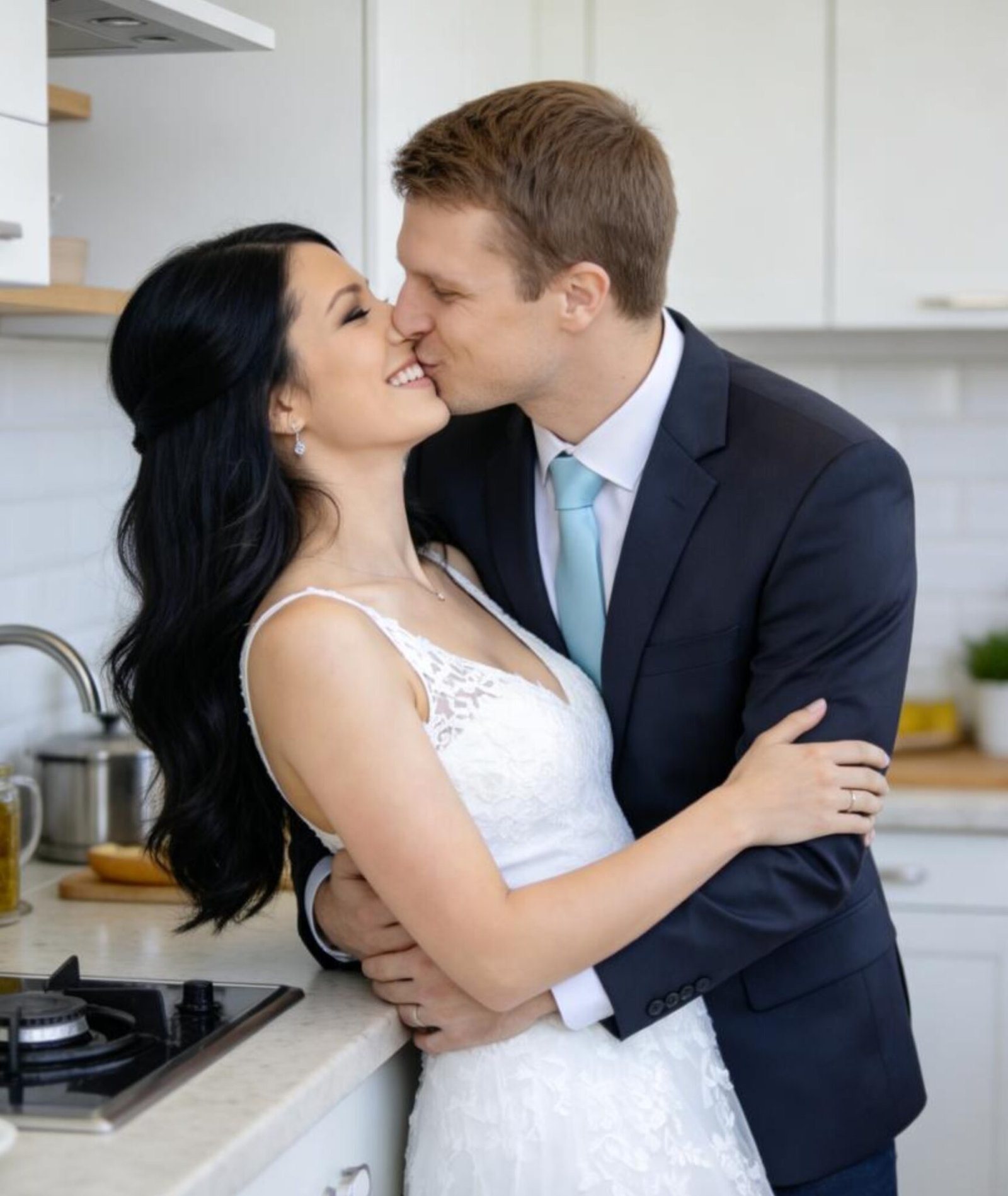 Ryan had Madison pressed against the kitchen counter, his hands on her waist like they’d been there before. Madison’s arms were around his neck. They were laughing softly, faces close, and then he kissed her.