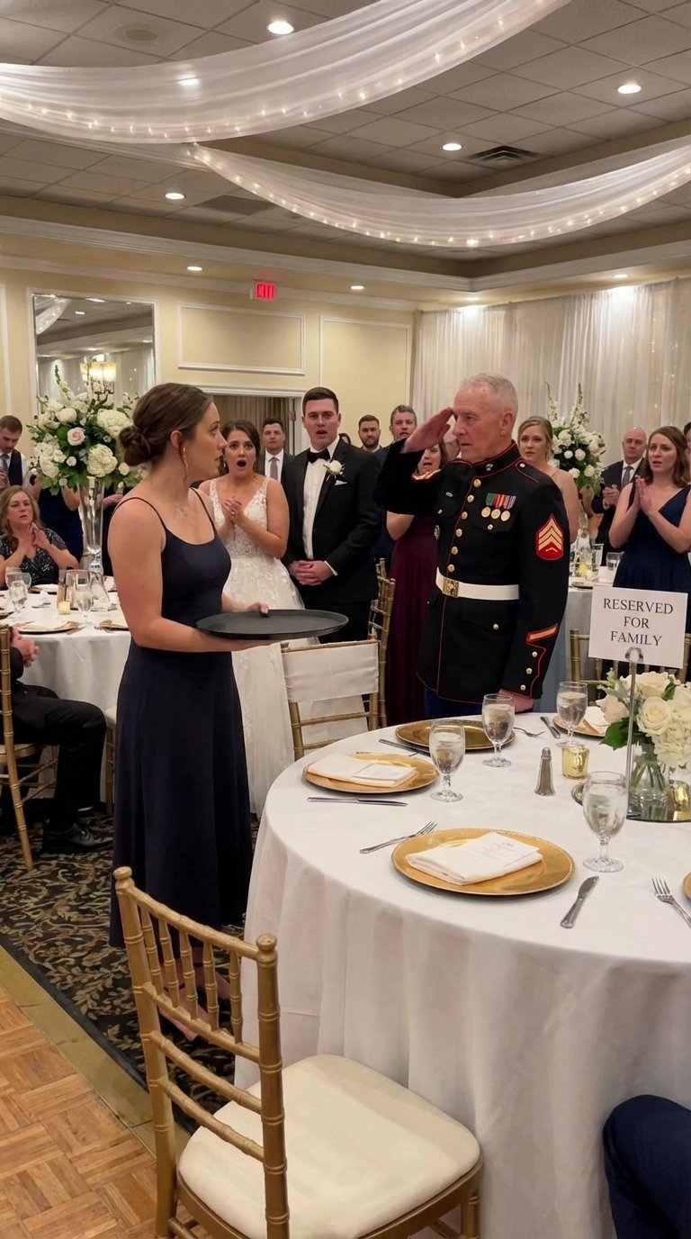 I was standing near the service corridor, holding a tray of miniature crab cakes while a catering manager barked orders about table assignments and dietary restrictions, and I wore a black server’s uniform that hung awkwardly over shoulders more accustomed to ballistic vests than polyester. My hair, cut short in a way my mother once called “aggressively unfeminine,” was slicked back into something resembling compliance. A thin white scar traced from my right temple into my hairline, faint now but impossible to erase. I had not come dressed as a bridesmaid. I had not come dressed as a guest. I had come dressed as staff.